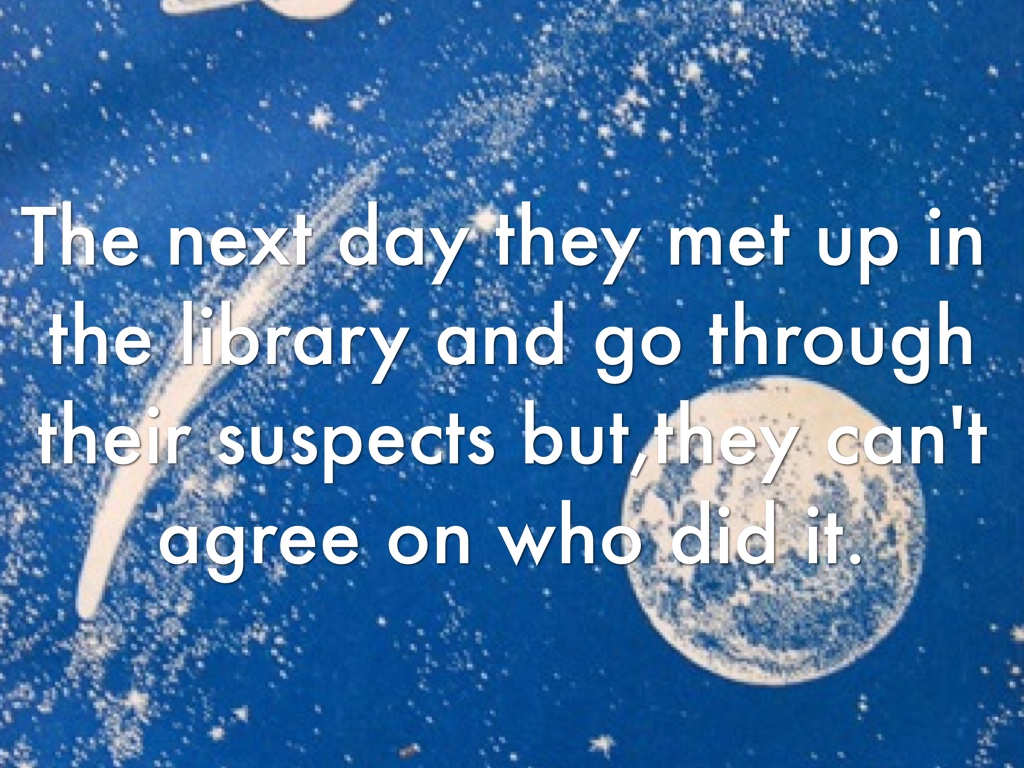 The next day they met up in the library and go through their suspects but,they can't agree on who did it.
