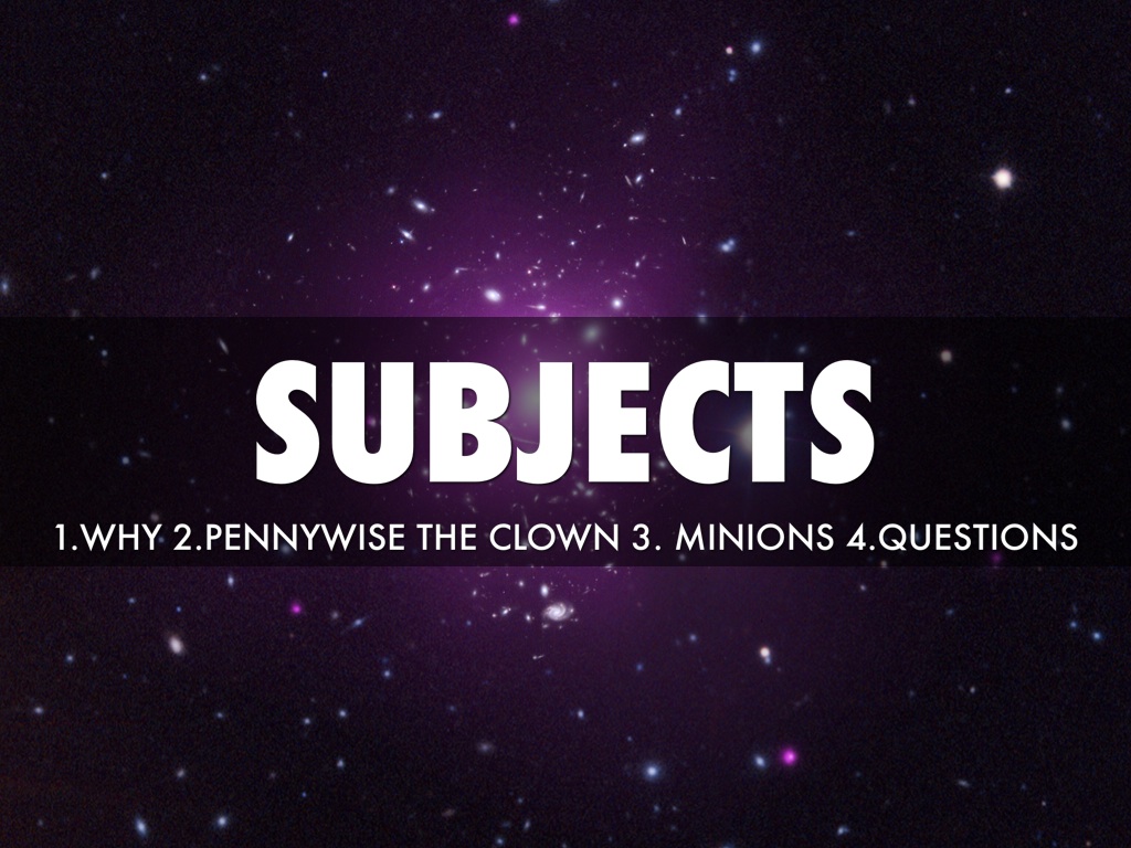 1.WHY 2.PENNYWISE THE CLOWN 3. MINIONS 4.QUESTIONS