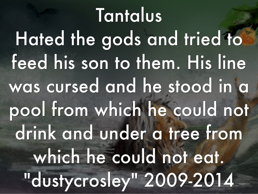 Hated the gods and tried to feed his son to them. His line was cursed and he stood in a pool from which he could not drink and under a tree from which he could not eat.