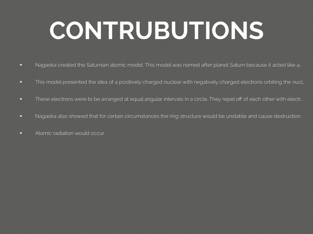 Nagaoka created the Saturnian atomic model. This model was named after planet Saturn because it acted like a mini solar system.