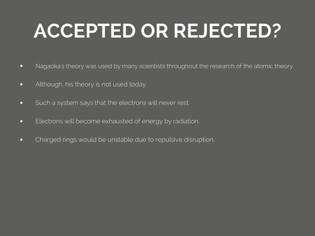 Nagaoka's theory was used by many scientists throughout the research of the atomic theory.