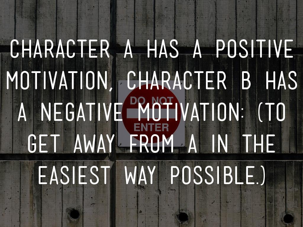 Character A has a positive motivation, Character B has a negative motivation: (to get away from a in the easiest way possible.)