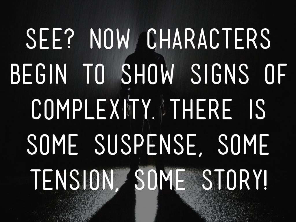 see? now characters begin to show signs of complexity. There is some suspense, some tension, some story!