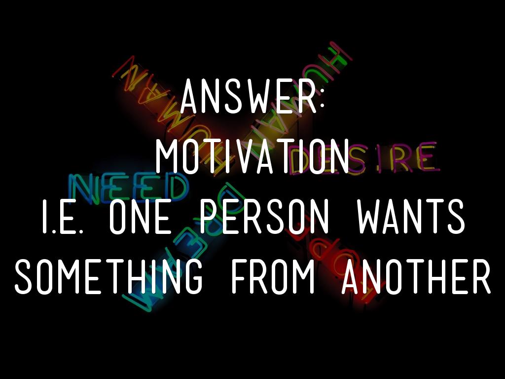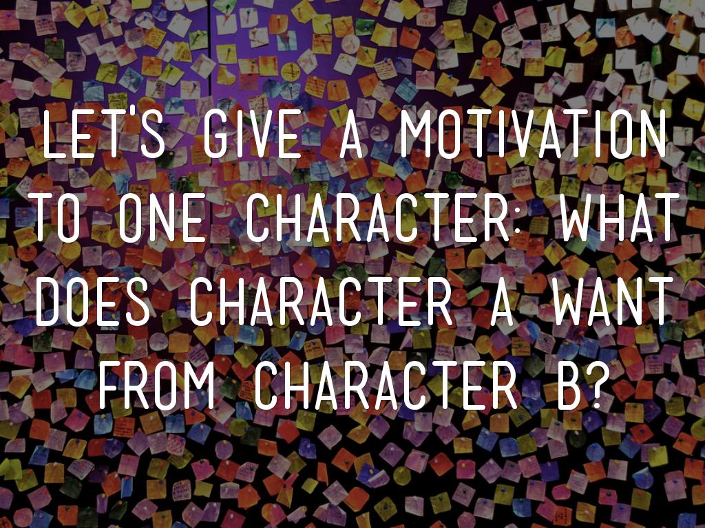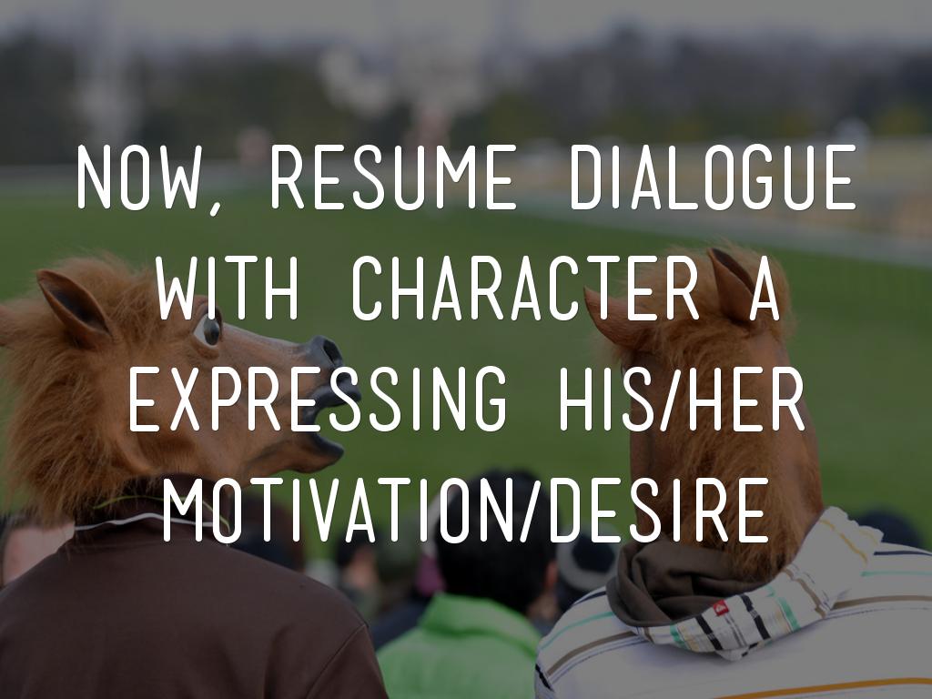 Now, resume dialogue with character A expressing his/her motivation/desire