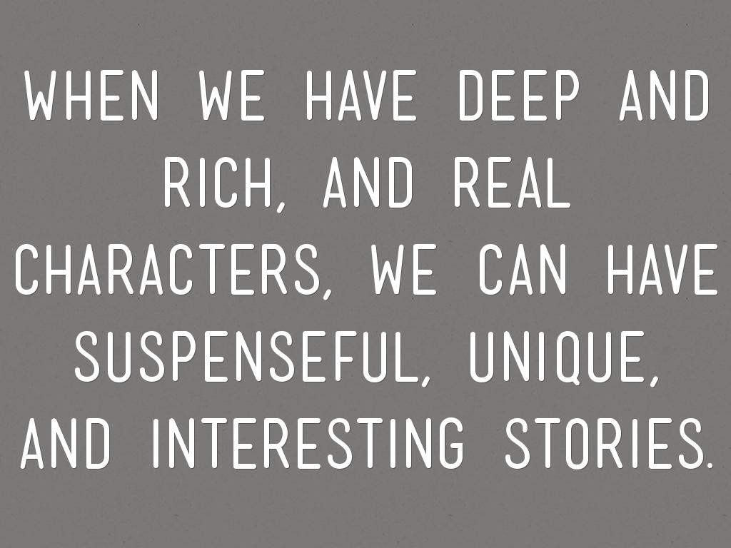 When we have deep and rich, and real characters, we can have suspenseful, unique, and interesting stories.
