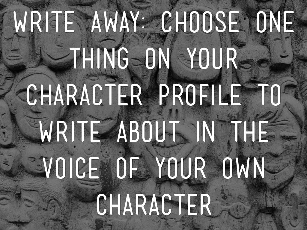 Write Away: Choose one thing on your Character Profile to Write about IN the voice of your own character