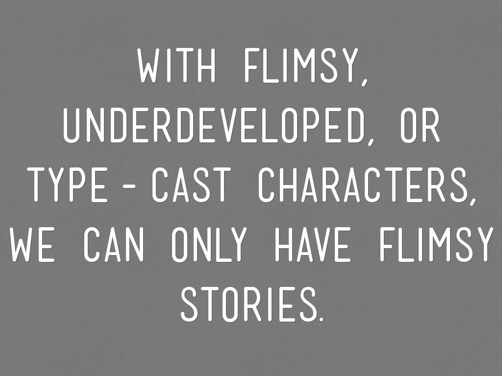 With flimsy, underdeveloped, or type-cast characters, we can only have flimsy stories.