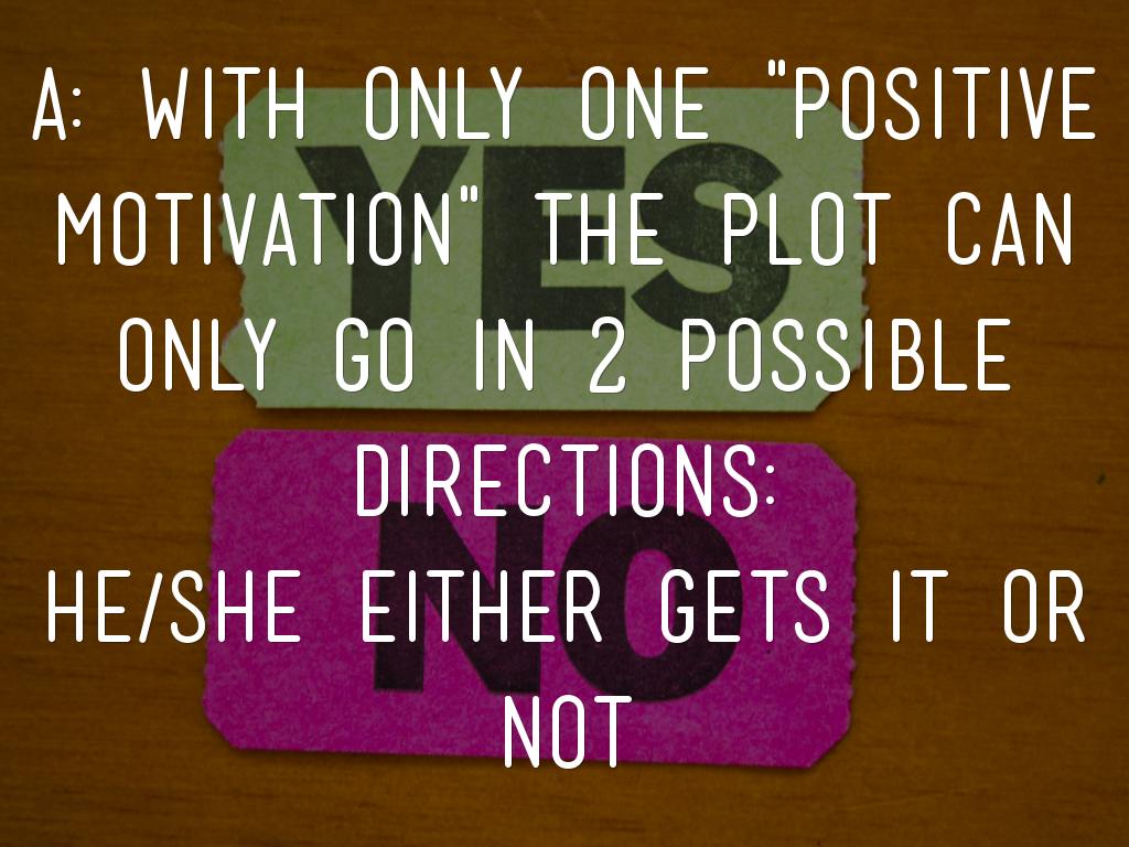 A: With only one "positive Motivation" the plot can only go in 2 possible directions: