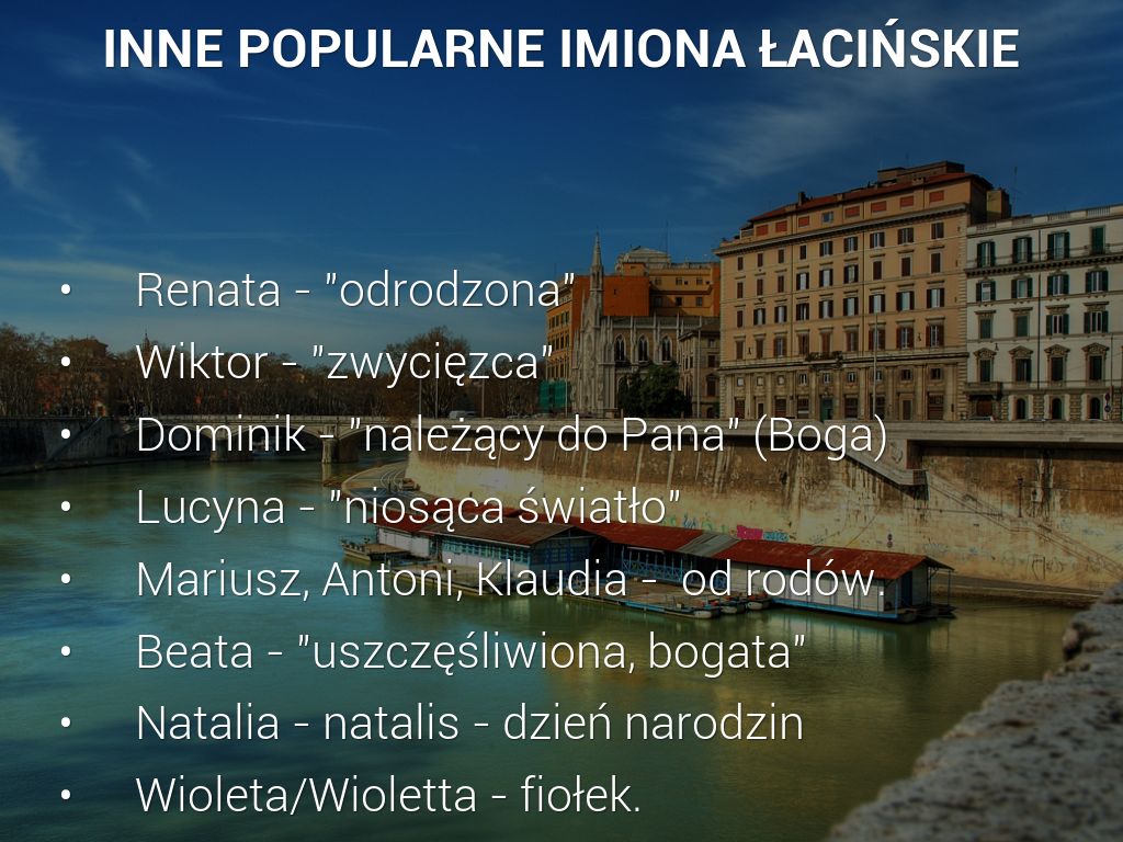 Imiona w języku polskim mają różne pochodzenie, niektóre z nich wymyślili nasi słowiańscy przodkowie, a inne w późniejszych czasach zapożyczyliśmy z innych kultur.