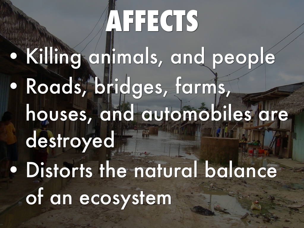 • Roads, bridges, farms, houses, and automobiles are destroyed