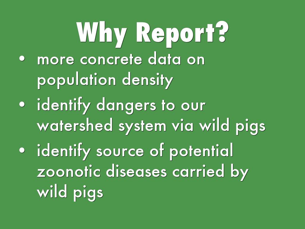 The more credible reports are made the better the quality of information we have concerning the density of populations in areas.... hard to tell other wise because of the range that hogs travel and adaptability