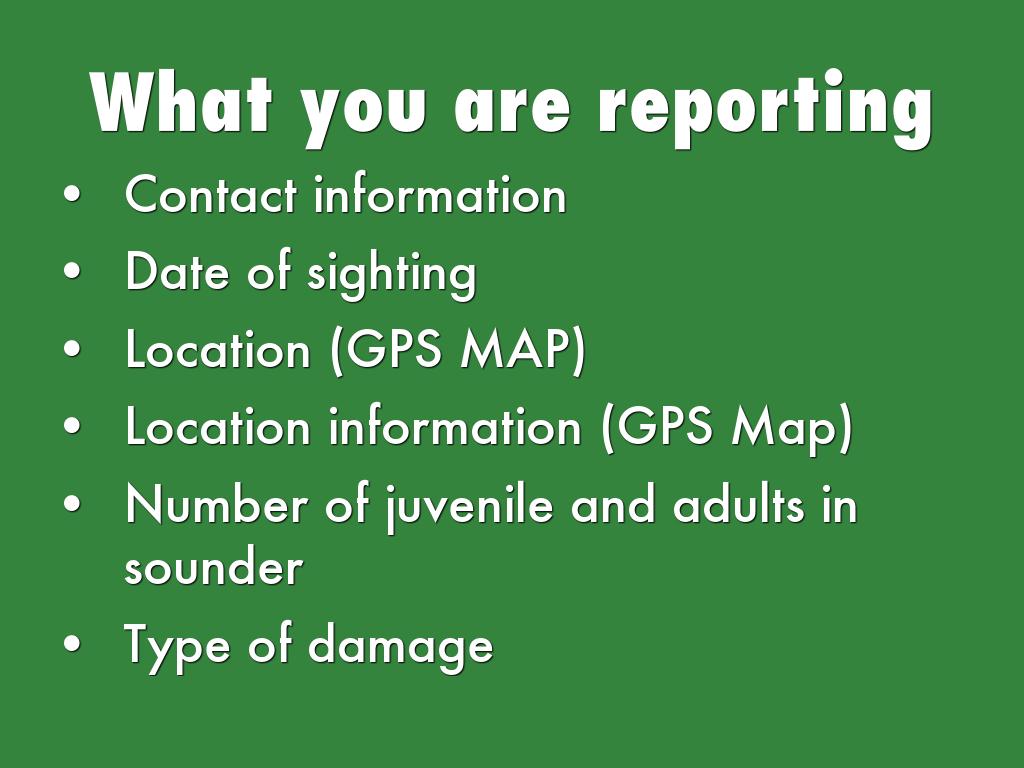 Name, email, telephone number location--- county and allows you to find it on GPS map--- nearest stream-- allows for them to determine potential damage to water sheds
