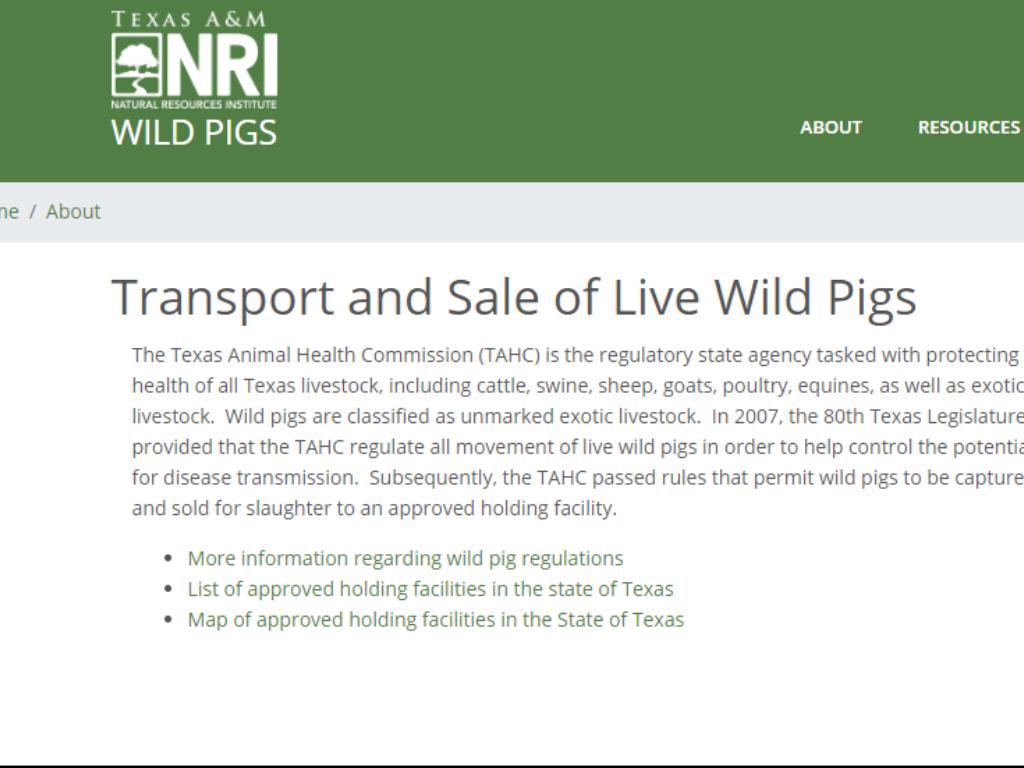 If you do trap wild hogs or capture them by other legal means, the NRI website has additional information about locations around the state that will buy hogs.