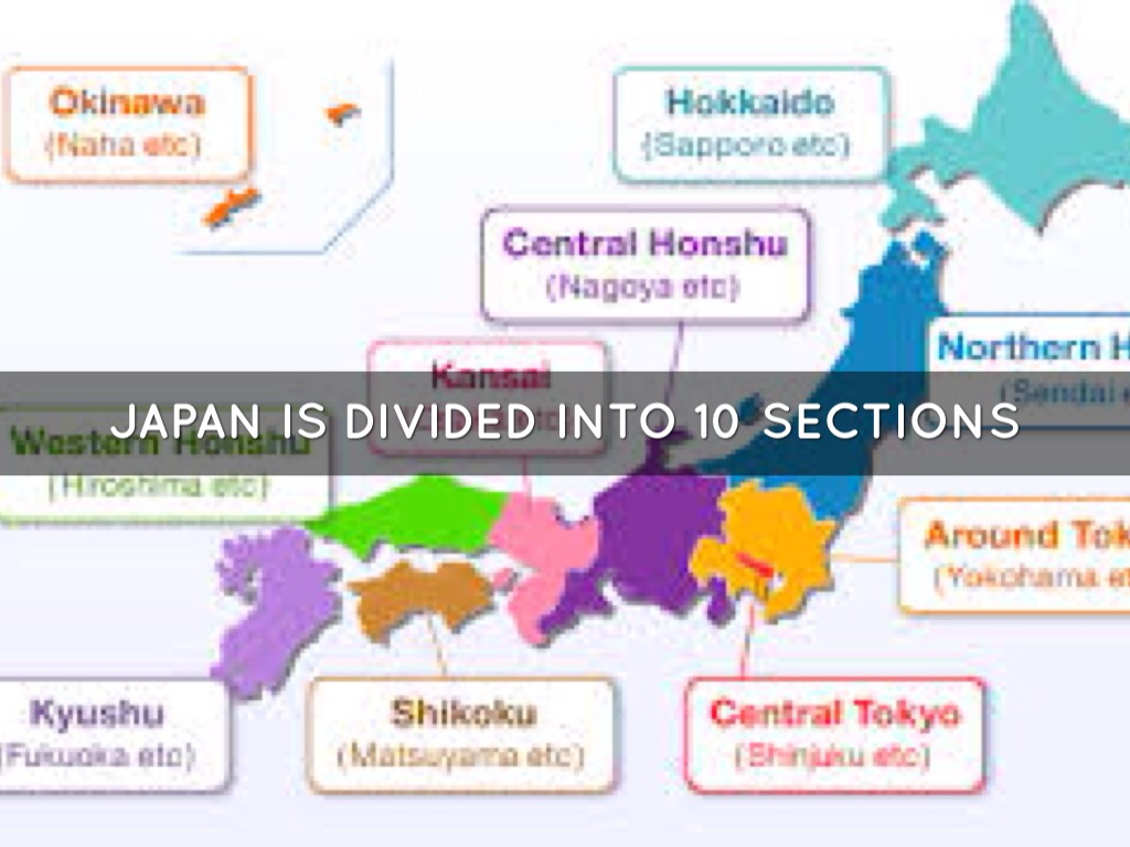 JAPAN IS DIVIDED INTO 10 SECTIONS