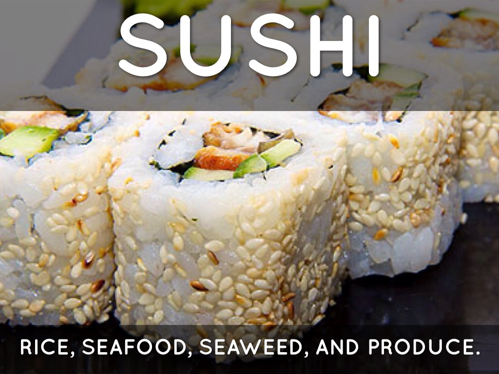 RICE, SEAFOOD, SEAWEED, AND PRODUCE.