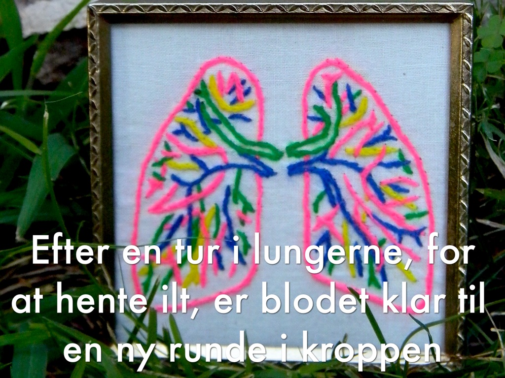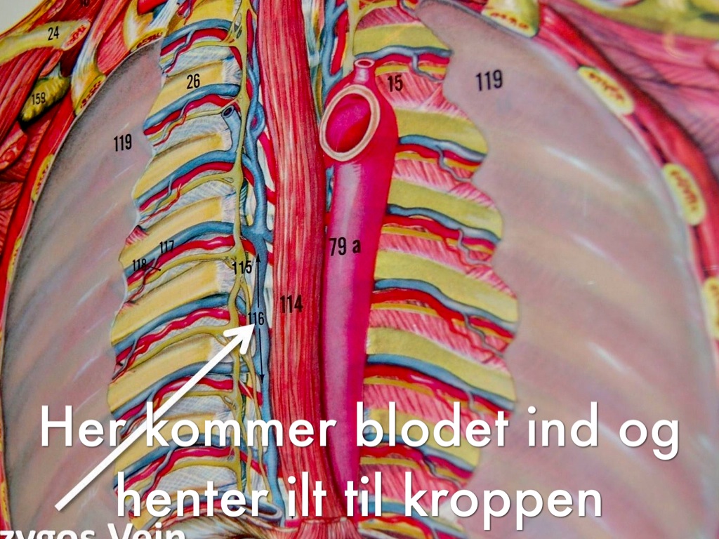 I lungerne ligger også blodårene, hvor blodet pumpes ind og henter ilt til kroppen