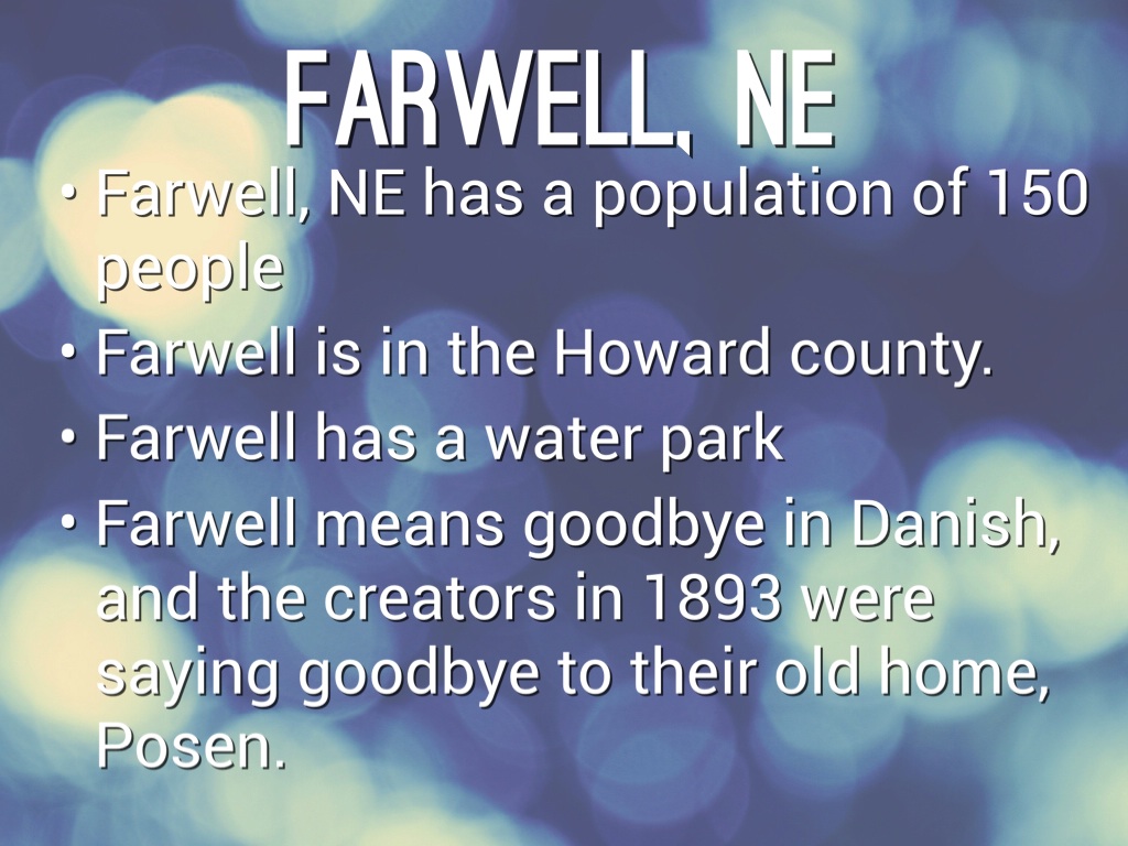 • Farwell means goodbye in Danish, and the creators in 1893 were saying goodbye to their old home, Posen.