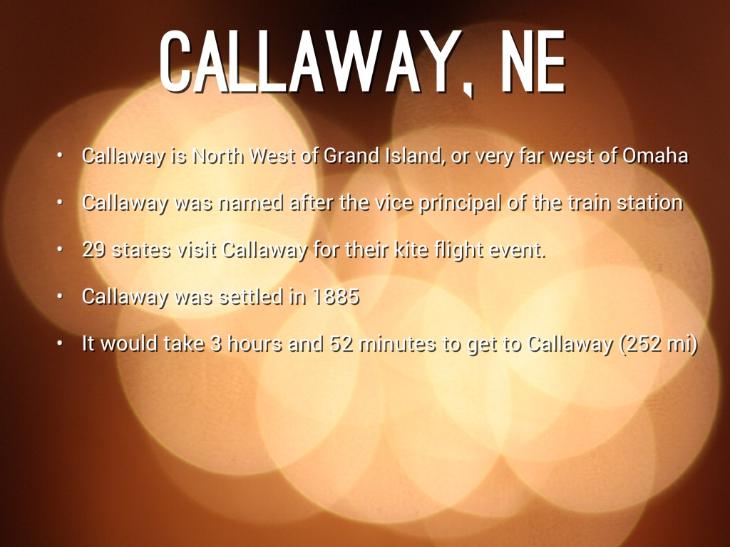 • Callaway is North West of Grand Island, or very far west of Omaha