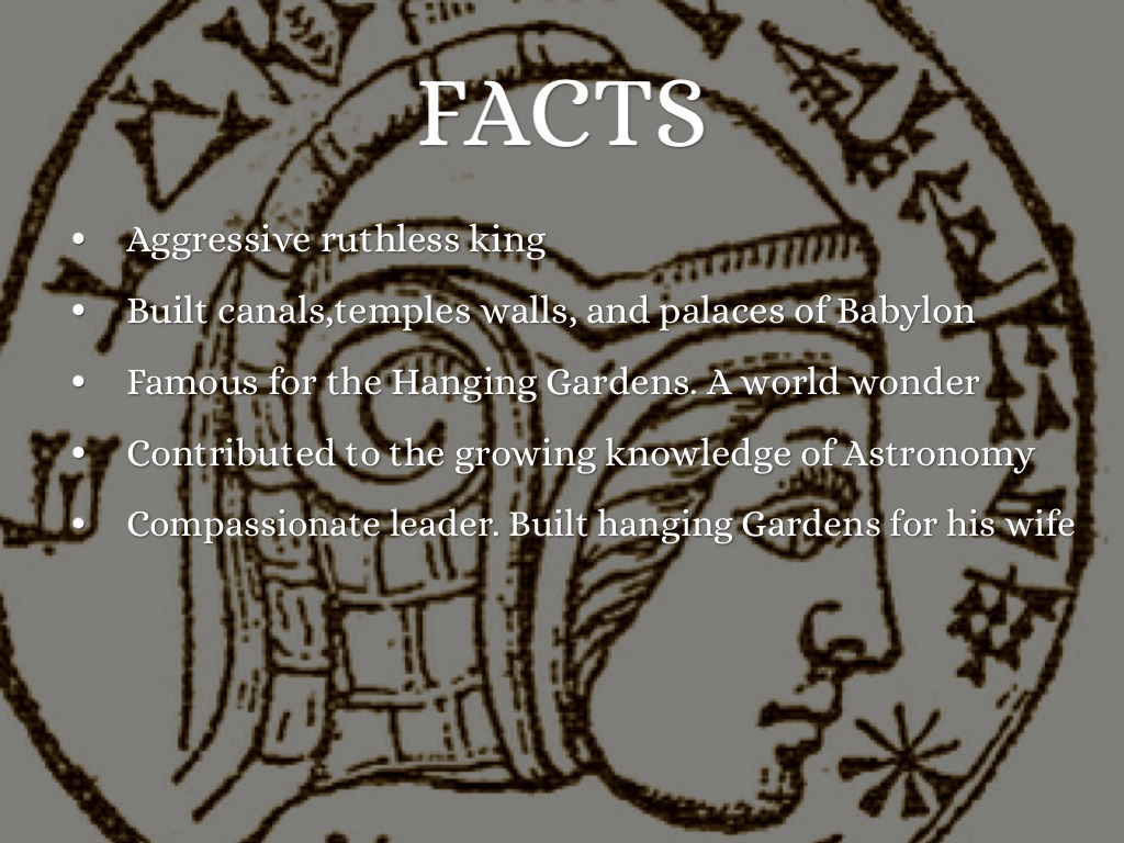 • Compassionate leader. Built hanging Gardens for his wife