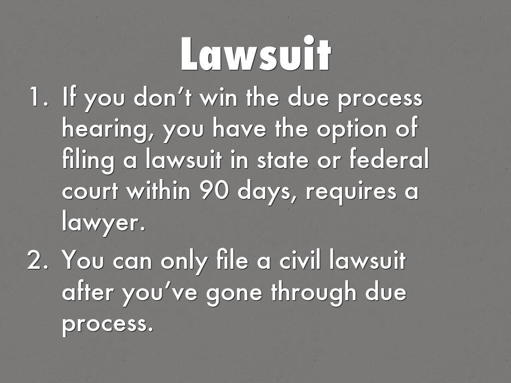 If you don’t win the due process hearing, you have the option of filing a lawsuit in state or federal court within 90 days, requires a lawyer.