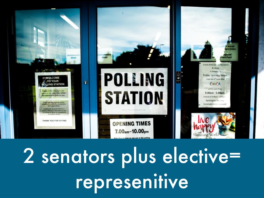 2 senators plus elective= represenitive