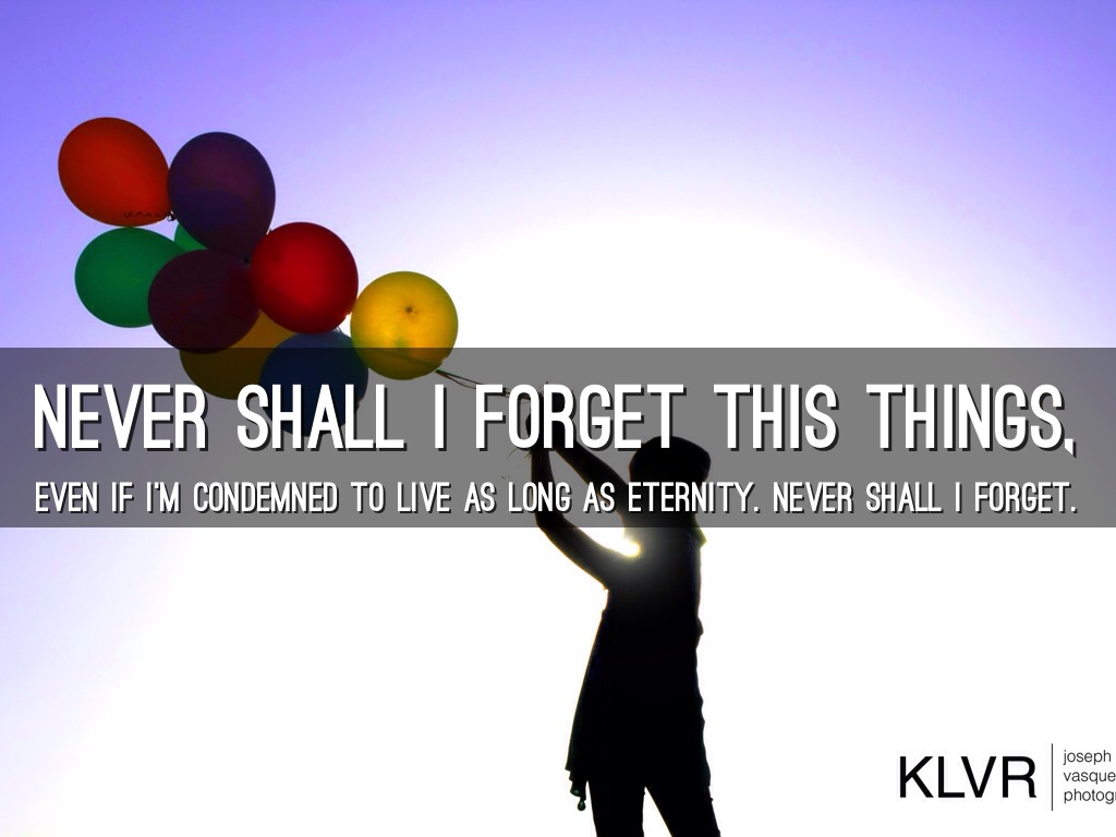 EVEN IF I'M CONDEMNED TO LIVE AS LONG AS ETERNITY. NEVER SHALL I FORGET.
