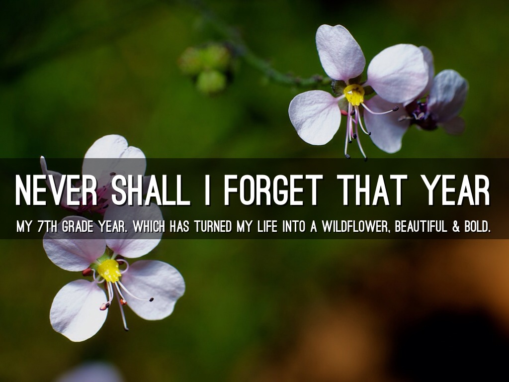My 7th grade year. Which has turned my life into a wildflower, beautiful & bold.