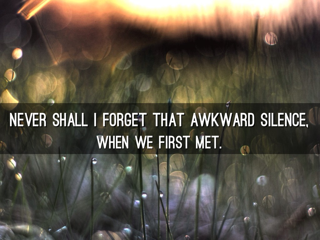NEVER SHALL I FORGET THAT AWKWARD SILENCE,