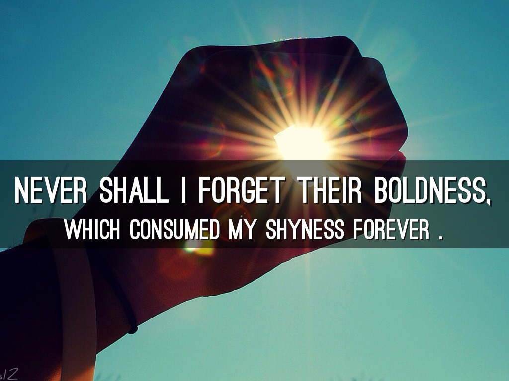 NEVER SHALL I FORGET THEIR BOLDNESS,