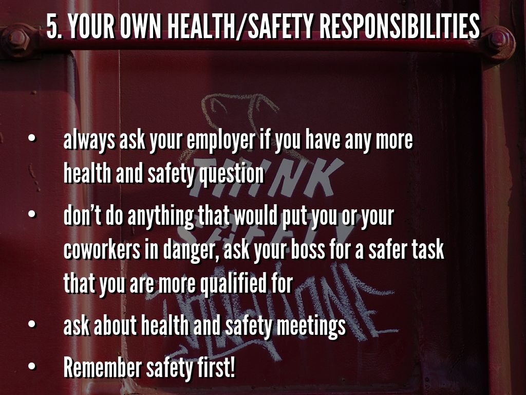 5. your own health/safety responsibilities
