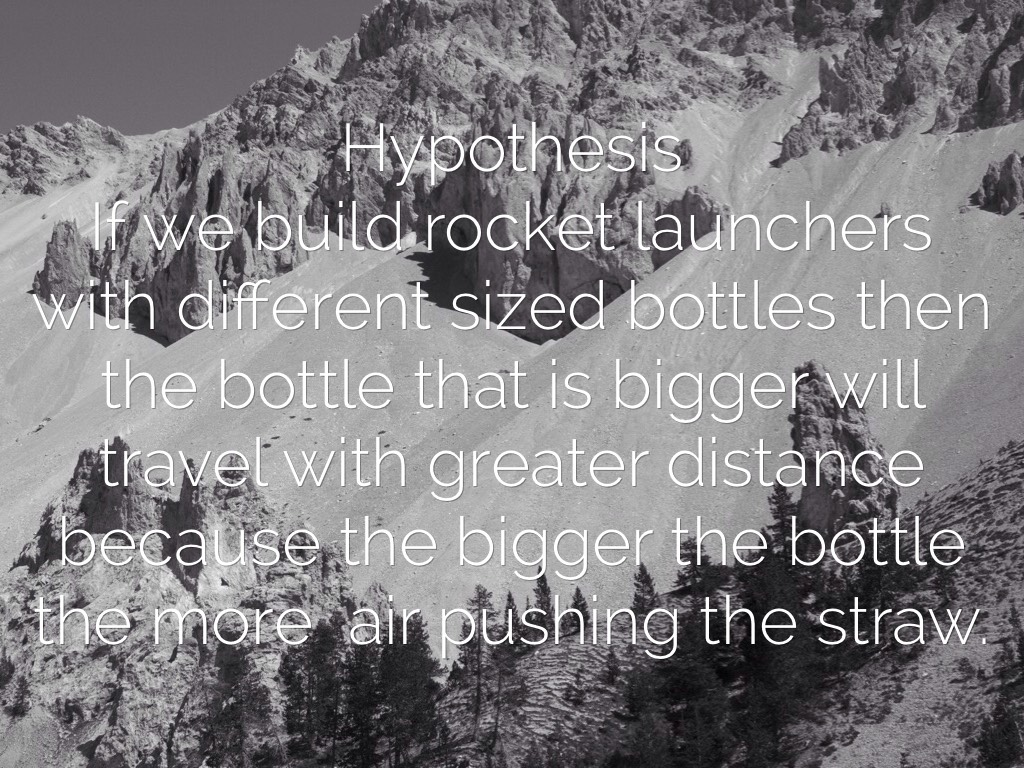Hypothesis If we build rocket launchers with different sized bottles then the bottle that is bigger will travel with greater distance because the bigger the bottle the more air pushing the straw.
