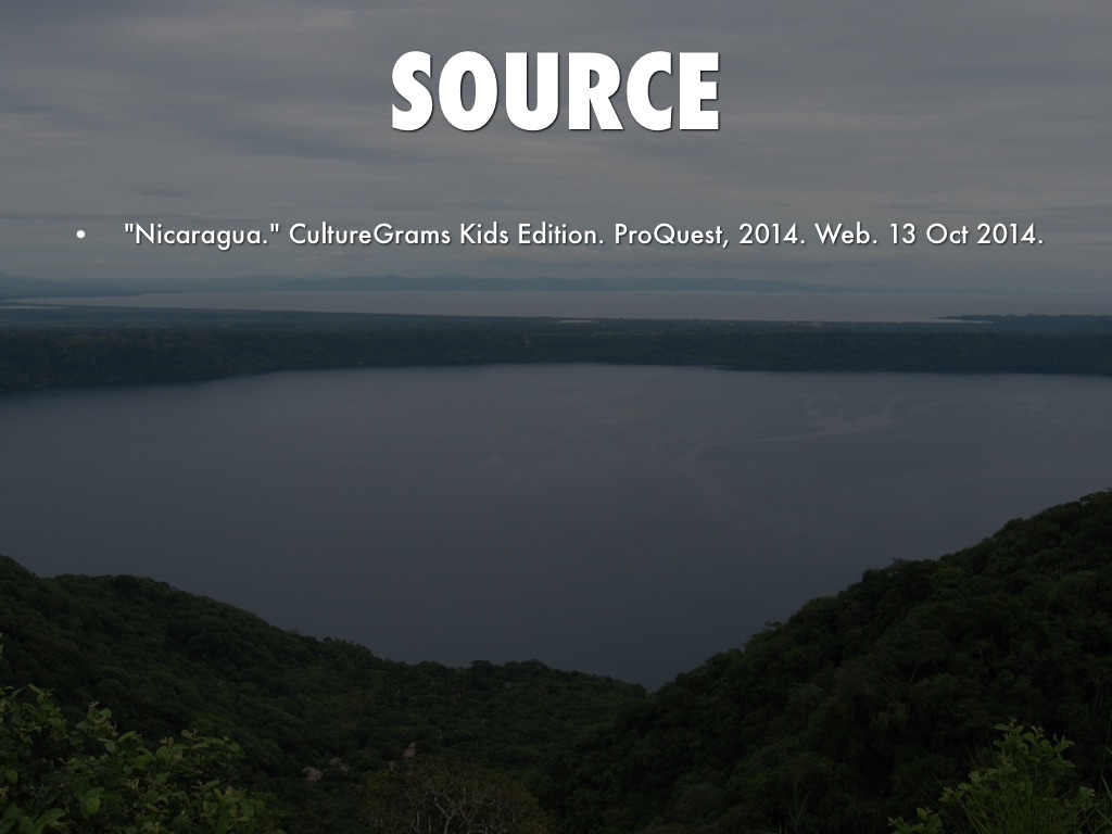 "Nicaragua." CultureGrams Kids Edition. ProQuest, 2014. Web. 13 Oct 2014.