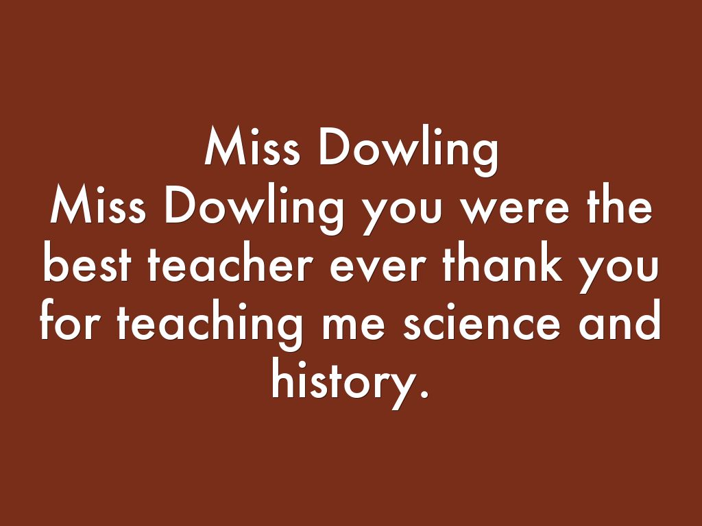 Miss Dowling you were the best teacher ever thank you for teaching me science and history.
