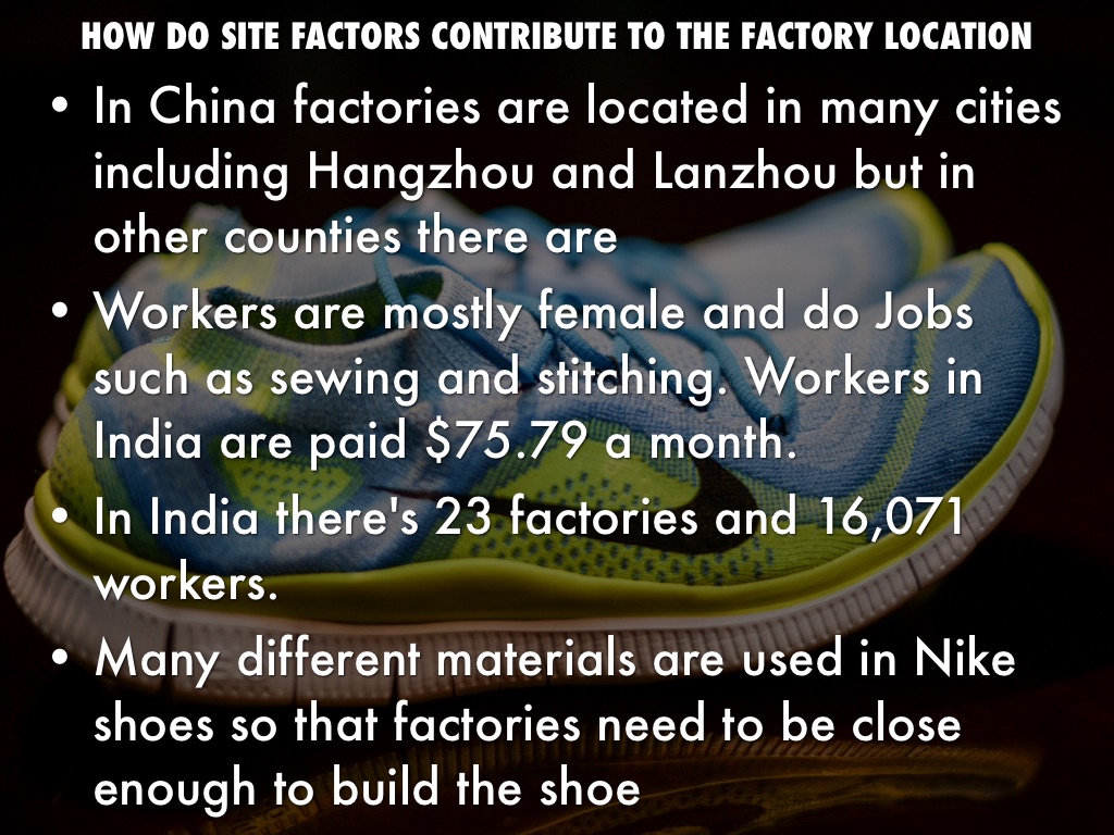 Many different materials are used in Nike shoes so that factories need to be close enough to build the shoe