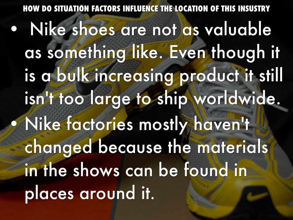 Nike factories mostly haven't changed because the materials in the shows can be found in places around it.