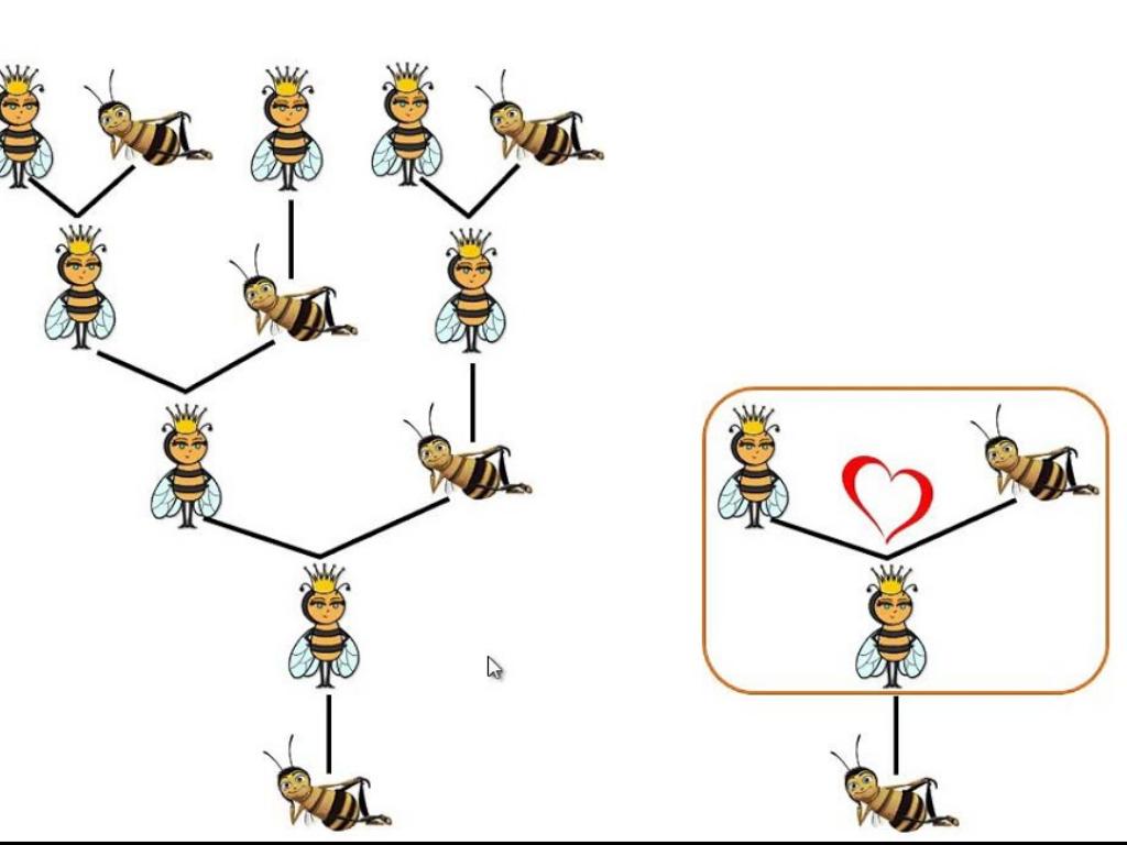 La reina abeja si tiene un padre y madre( los abuelos de zángano) por eso se escribe 2 en la secuencia.