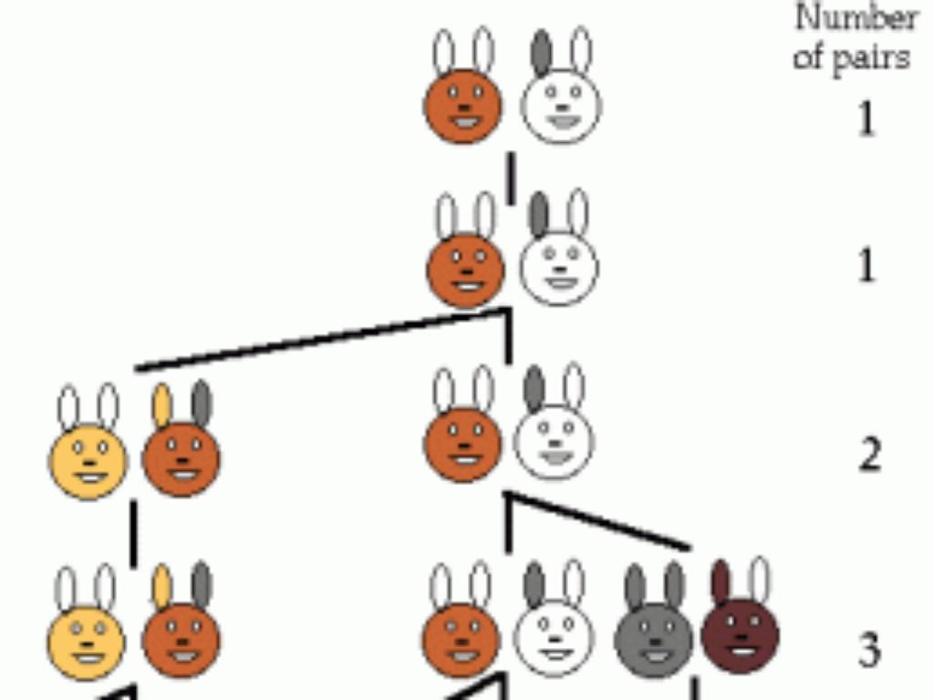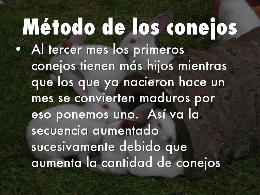 Al tercer mes los primeros conejos tienen más hijos mientras que los que ya nacieron hace un mes se convierten maduros por eso ponemos uno. Así va la secuencia aumentado sucesivamente debido que aumenta la cantidad de conejos