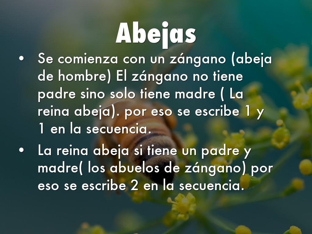 Se comienza con un zángano (abeja de hombre) El zángano no tiene padre sino solo tiene madre ( La reina abeja). por eso se escribe 1 y 1 en la secuencia.
