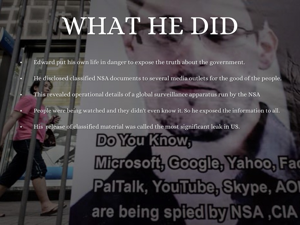 People were being watched and they didn't even know it. So he exposed the information to all.