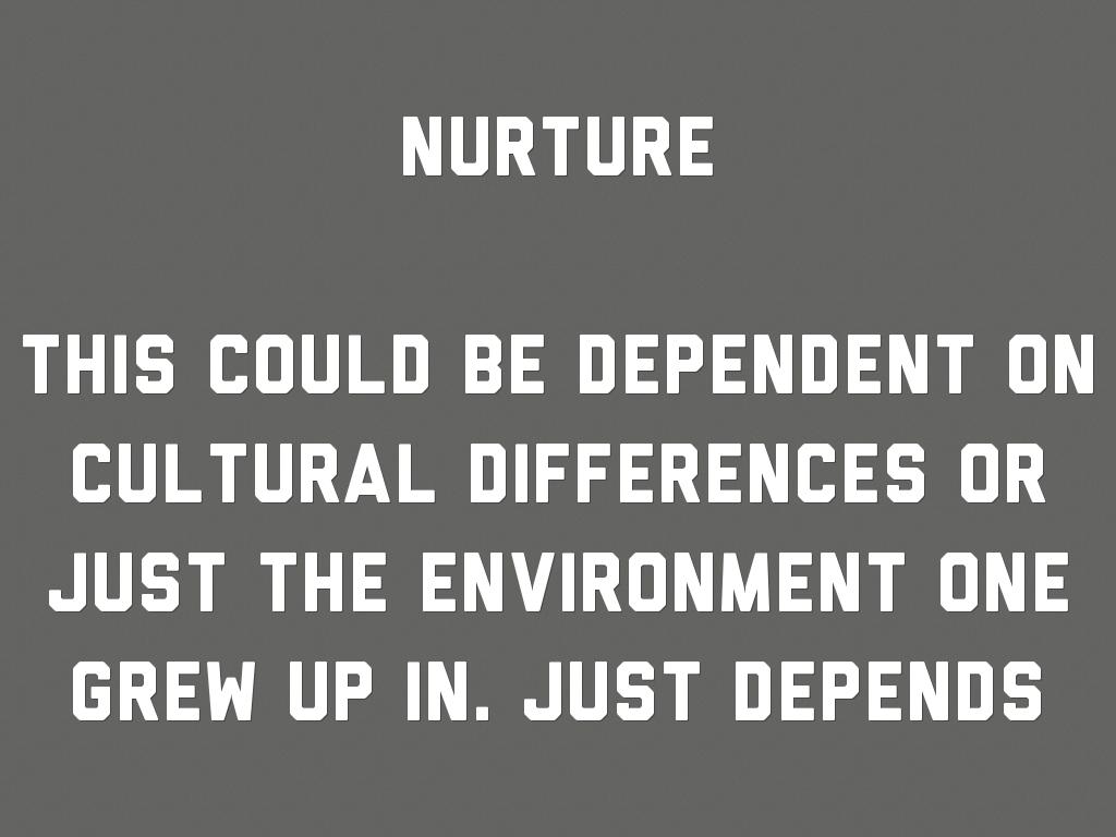 this could be dependent on cultural differences or just the environment one grew up in. just depends