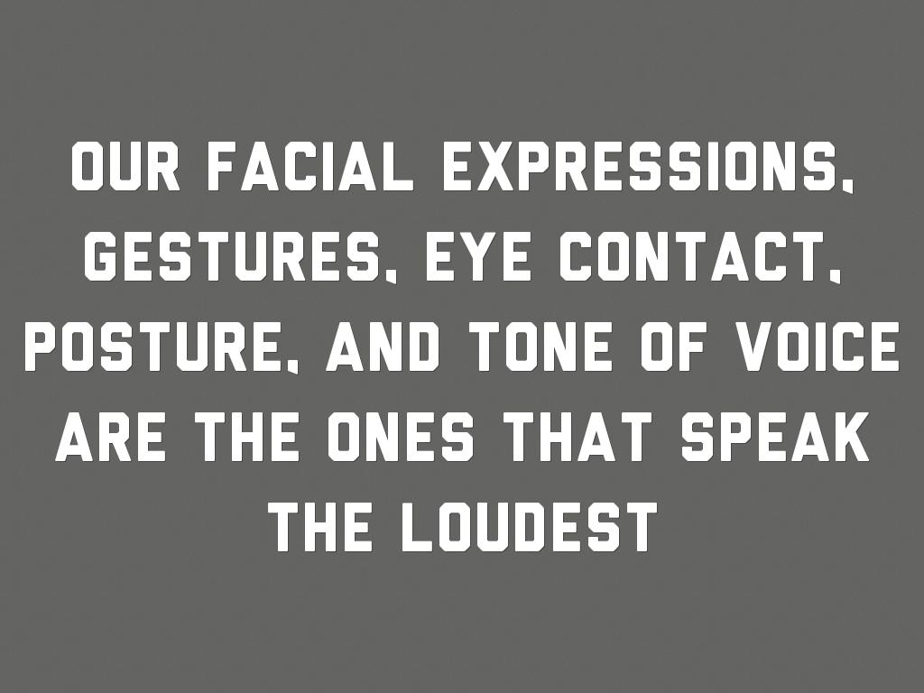 OUR FACIAL EXPRESSIONS, GESTURES, EYE CONTACT, POSTURE, AND TONE OF VOICE ARE THE ONES THAT SPEAK THE LOUDEST
