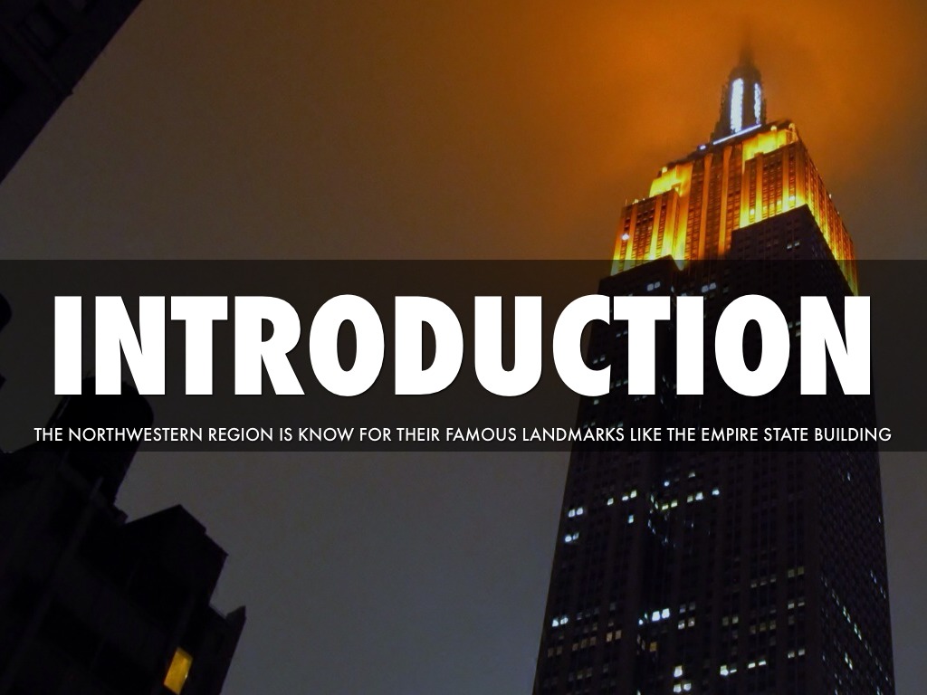 THE NORTHWESTERN REGION IS KNOW FOR THEIR FAMOUS LANDMARKS LIKE THE EMPIRE STATE BUILDING
