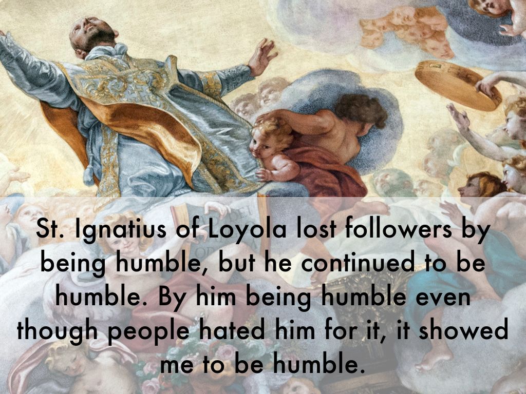 St. Ignatius of Loyola lost followers by being humble, but he continued to be humble. By him being humble even though people hated him for it, it showed me to be humble.