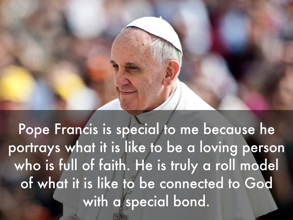 Pope Francis is special to me because he portrays what it is like to be a loving person who is full of faith. He is truly a roll model of what it is like to be connected to God with a special bond.