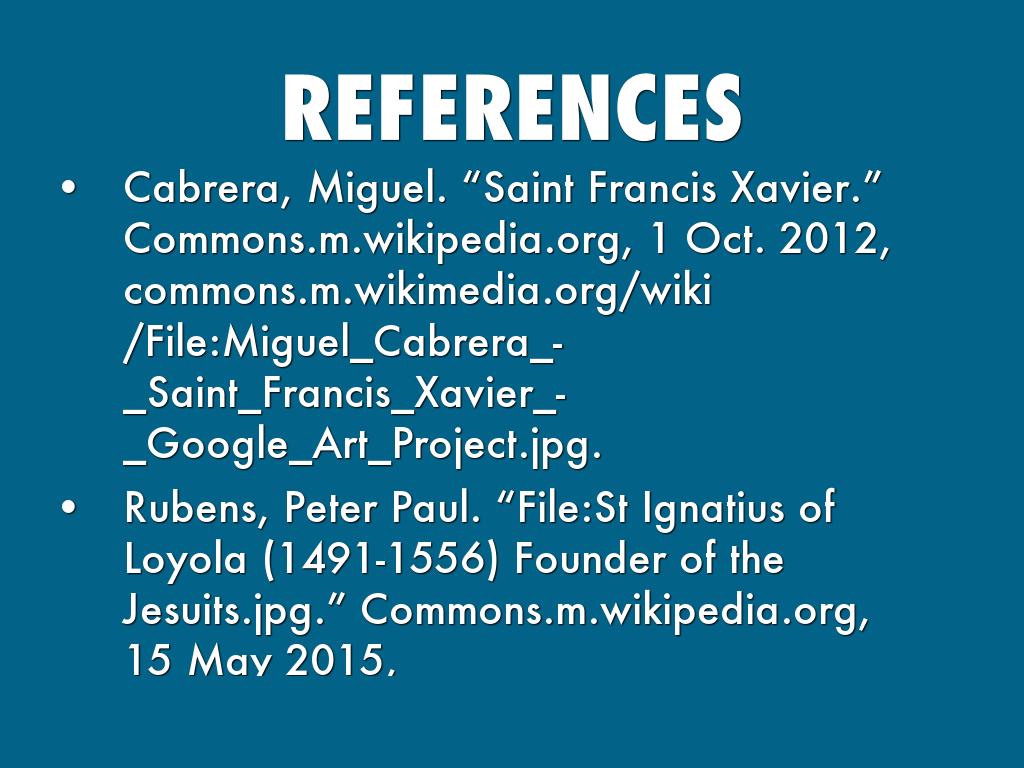 Rubens, Peter Paul. “File:St Ignatius of Loyola (1491-1556) Founder of the Jesuits.jpg.” Commons.m.wikipedia.org, 15 May 2015, commons.m.wikimedia.org/wiki/File:St_Ignatius_of_Loyola_(1491-1556)_Founder....
