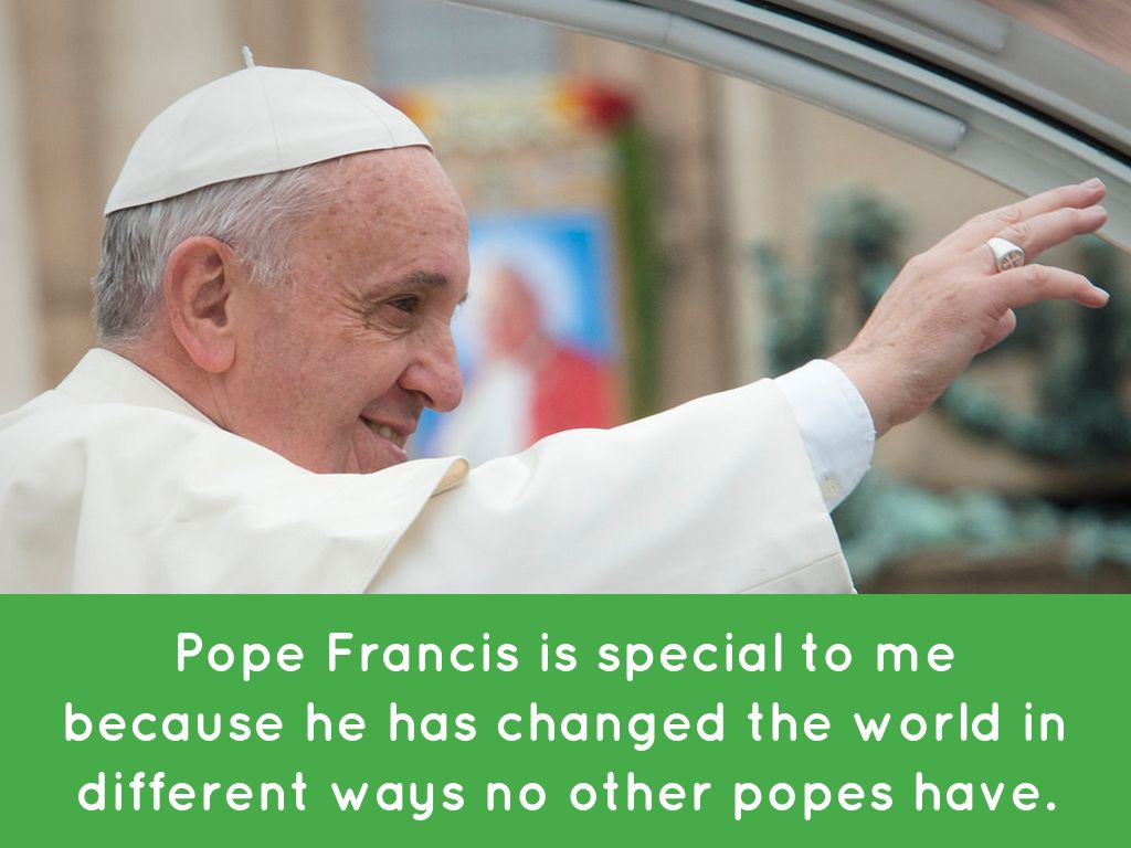 Pope Francis is special to me because he has changed the world in different ways no other popes have.