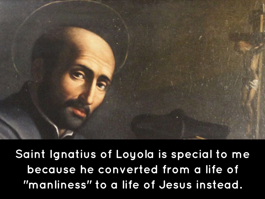 Saint Ignatius of Loyola is special to me because he converted from a life of "manliness" to a life of Jesus instead.