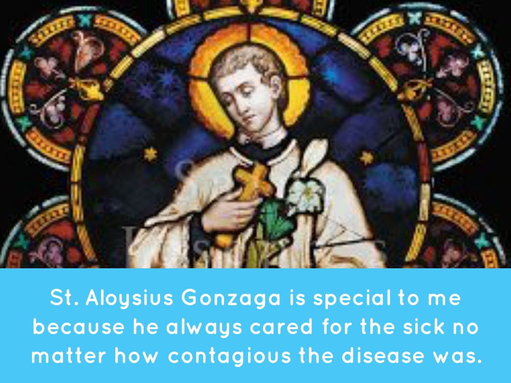 St. Aloysius Gonzaga is special to me because he always cared for the sick no matter how contagious the disease was.