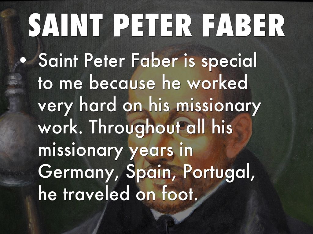 • Saint Peter Faber is special to me because he worked very hard on his missionary work. Throughout all his missionary years in Germany, Spain, Portugal, he traveled on foot.