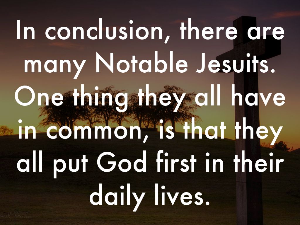 In conclusion, there are many Notable Jesuits. One thing they all have in common, is that they all put God first in their daily lives.